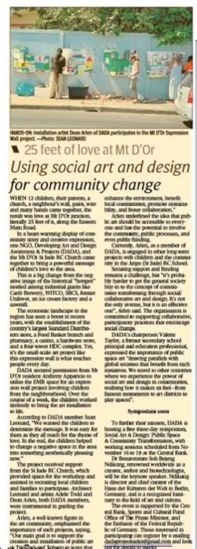 In the July/ August holidays Da. Da & Projects worked with children from Mt. Dor to create a mural with a difference along the Eastern Main Road.
