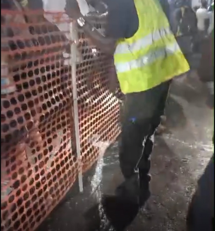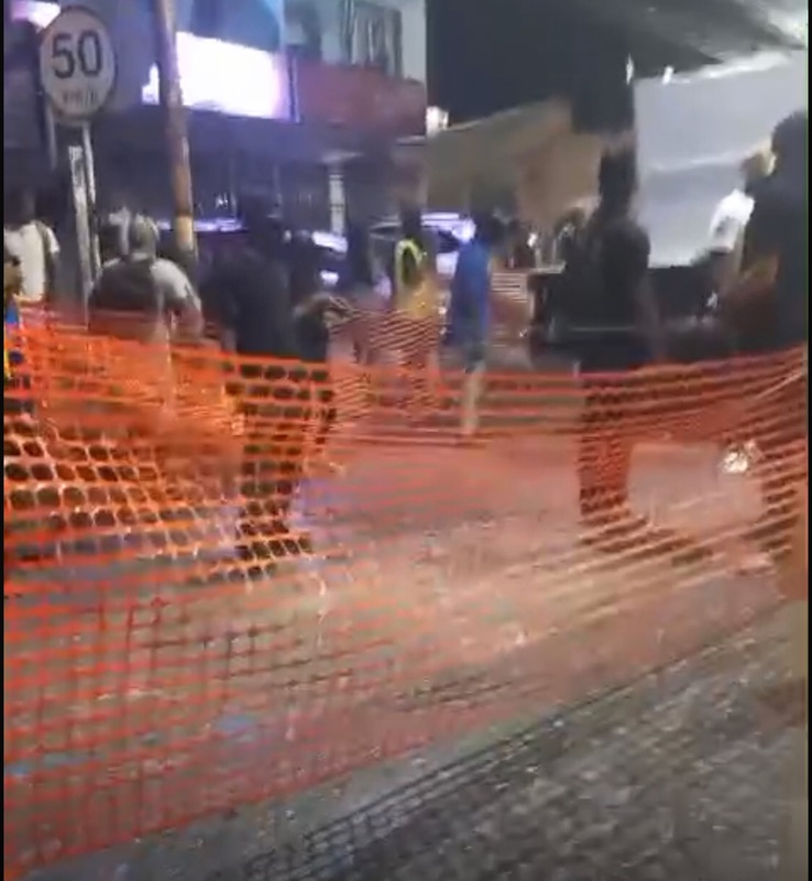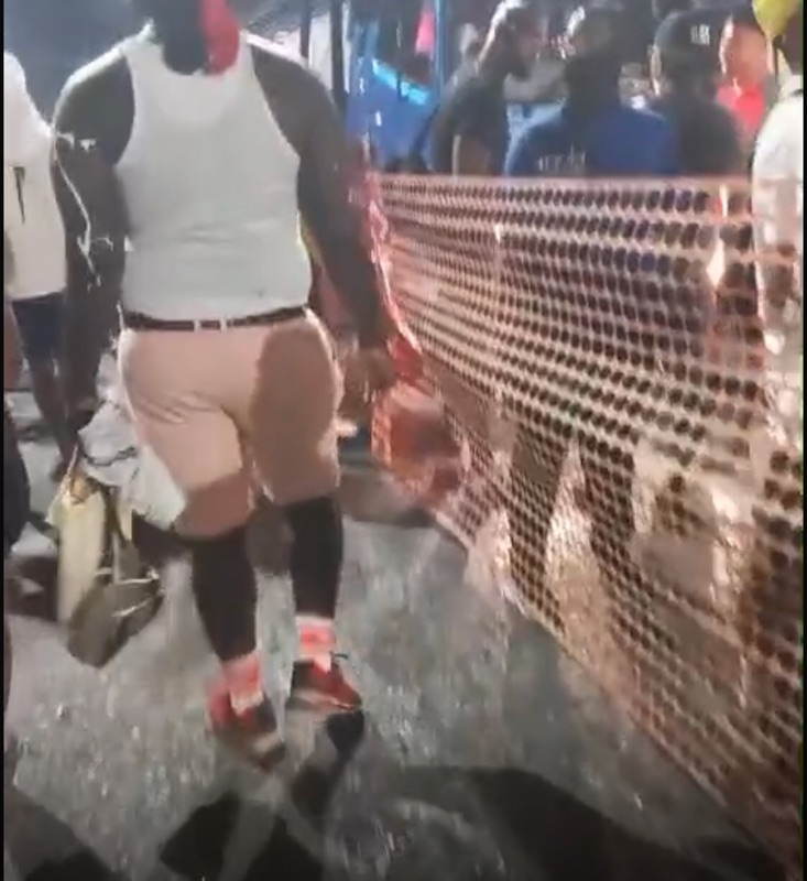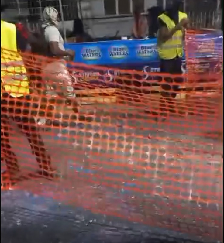 These fuzzy images were taken on Carnival Monday morning Jouvert celebrations in 2024. You will see people standing on one side of a fluorescent orange barrier. A clear demarcation of space.
