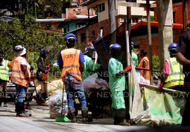 On closer observation of the barrier I see it as a metaphor for a much larger issue in our society. In Trinidad and Tobago we ignore the CEPEP Workers whose job it is to cut and maintain the nations streets. The ‘gang’ of people dressed similarly in fluorescent vests and dark clothing as in the photographs I captured also use dark blue tarps and orange barriers.