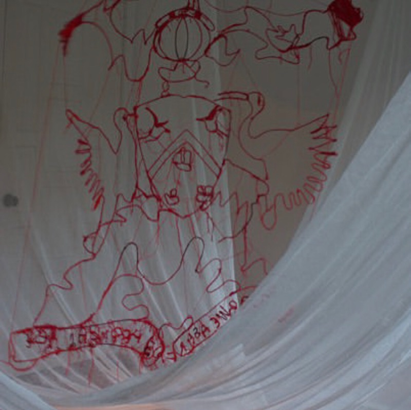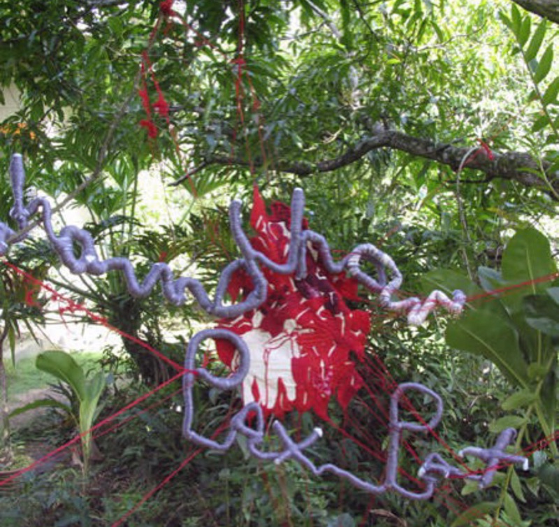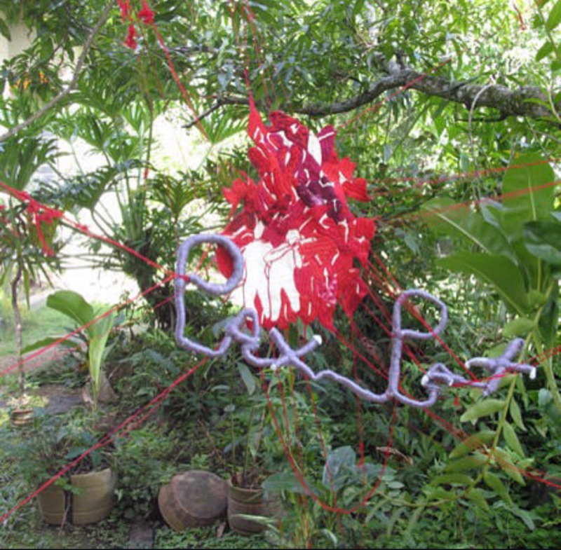 When no one wants to show experimental work, you make your own gallery. My Partner Richard Bolai and I became so fed up and worn down by the cliché(y) Art Gallery system that we encountered in Trinidad and Tobago. We decided to use our own houses to have solo shows. PATRIMONY shown at Mary Avenue Diego Martin, discusses the disillusionment felt at the time with the then Prime Minister, The Honorable Mr Patrick Manning. I took the Coat of Arms, made it larger than life - wrapped the elements in red thread - using one of our three national colors RED that is also a symbol of blood - to connote the feelings of despondency and anxiety felt by our citizens. It was the early period of fake news. A time when Trinidad and Tobago was used as a guinea pig by Cambridge Analytica as a political engine to usher in neopolitical propoganda. The title PATRIMONY includes the name Patrick as a double irony on the meaning.