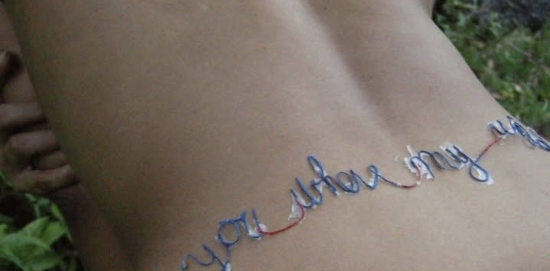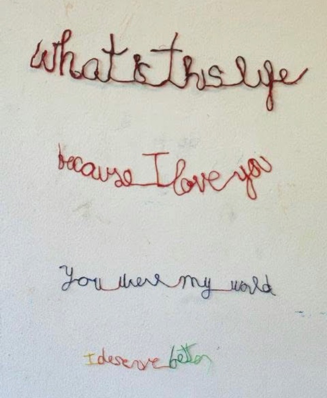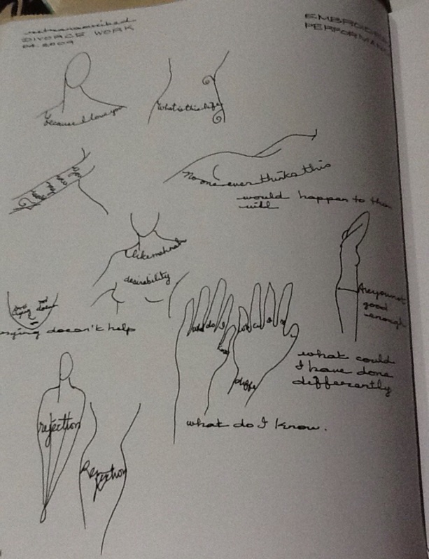 In forming…you were my world…and draping it onto my skin, at first I internalized a mental lashing of sorts. But then I was surprised by the fact that in placing the letters - in the actual reading and the meaning - there became a dis-association between myself and what I was labeling as my angst and hurt.