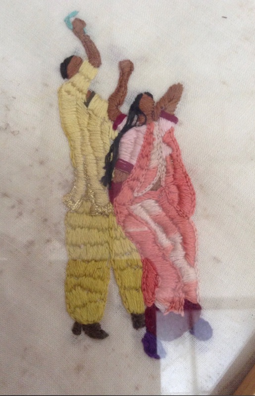 HIT! A Visual Documentation on Domestic Violence - this trilogy of handkerchief linen embroideries are carefully folded and feature women in Trinidad and Tobago being abused by their husbands. One is Hindu, one African and one, Muslim. The reference behind this work comes from a Calypso called Bull Pistle by Devon Ruthven George. It is all about the fact that women get abused regardless of who they are or what they may look like.